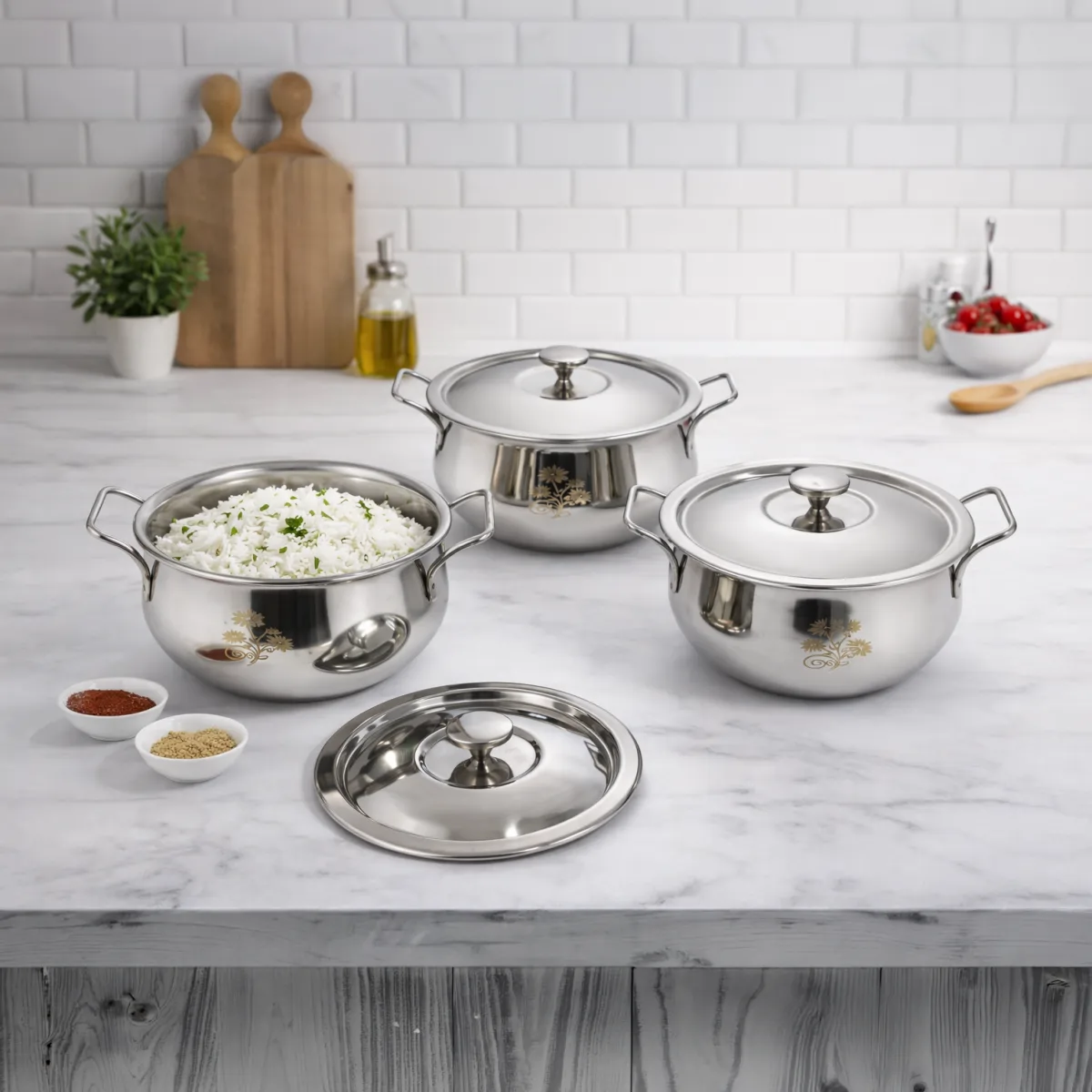 Each bowl comes with a secure, well-fitted lid that helps retain heat, maintain freshness, and protect food from dust or contamination. The sleek mirror finish adds an elegant touch to your dining table, making them perfect for home use, parties, catering, or festive gatherings.