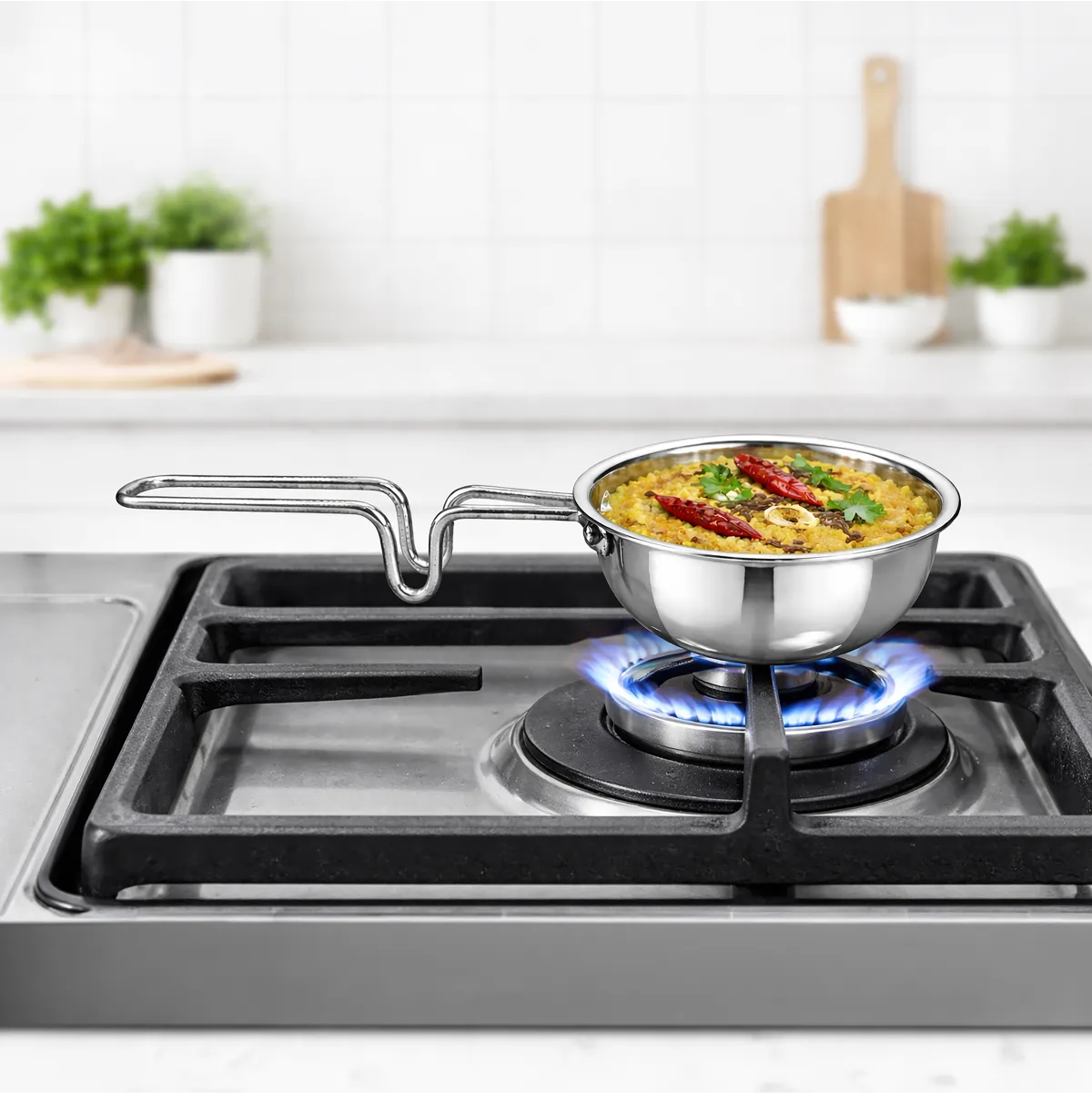 The Triply Tadkapan is specially designed to deliver consistent and controlled heat, making it ideal for preparing tadka (tempering) for dals, curries, and vegetables. Built with advanced triple-layer (triply) technology, it ensures uniform heat distribution, preventing burning and enhancing flavor release from spices.